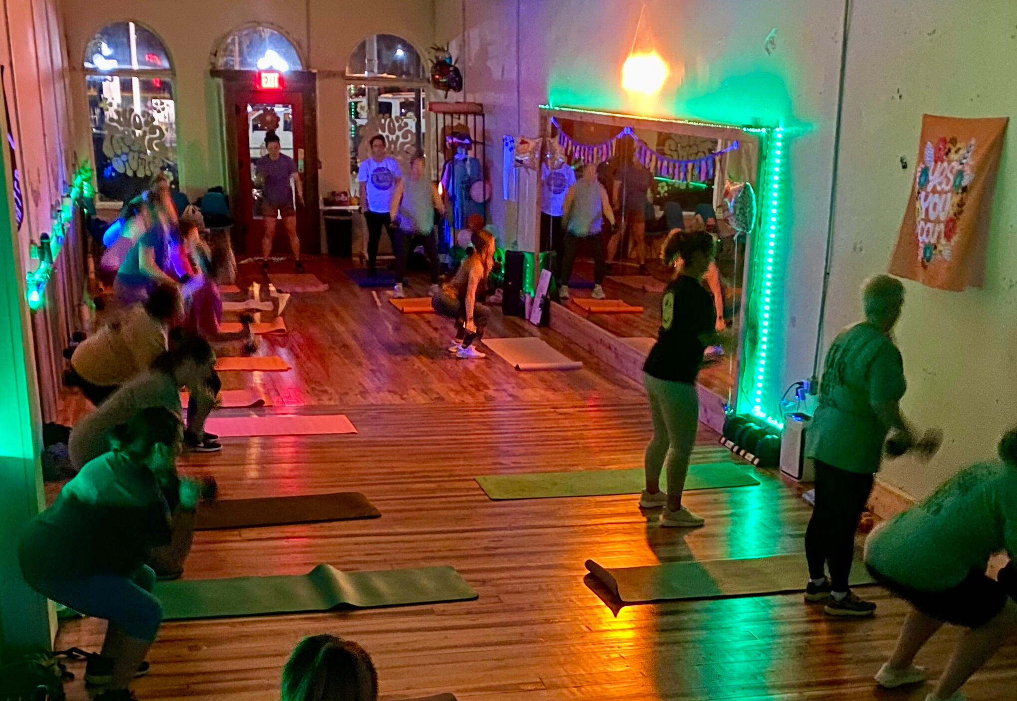 The class will be structured with strength training circuits to target upper and lower body muscle groups, intertwined with Tabata intervals to torch fat and get your heart pumping! All you need for this class is a yoga mat. We will provide the dumbbells, bands, or kettlebells!